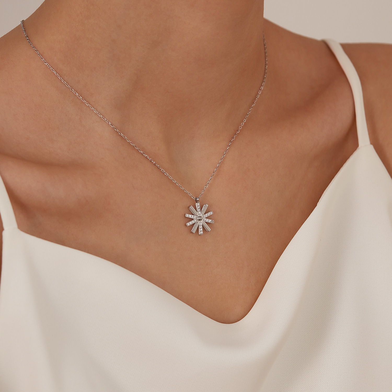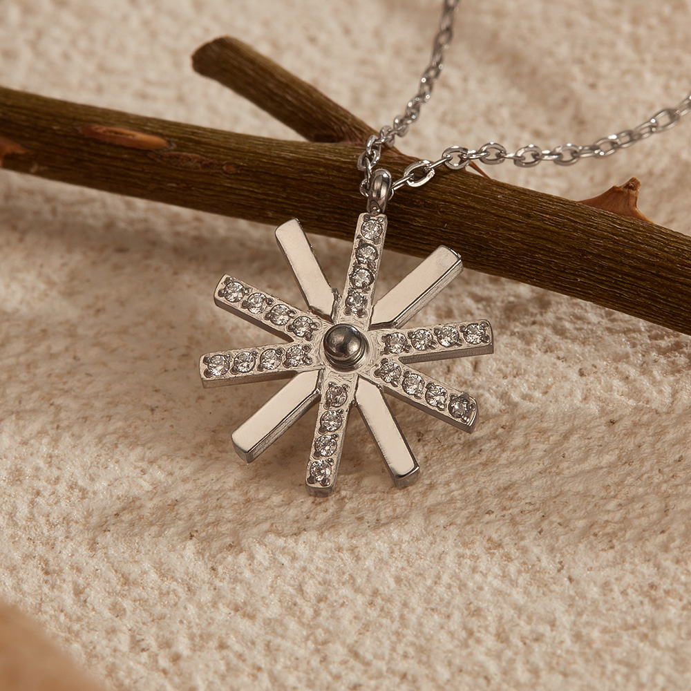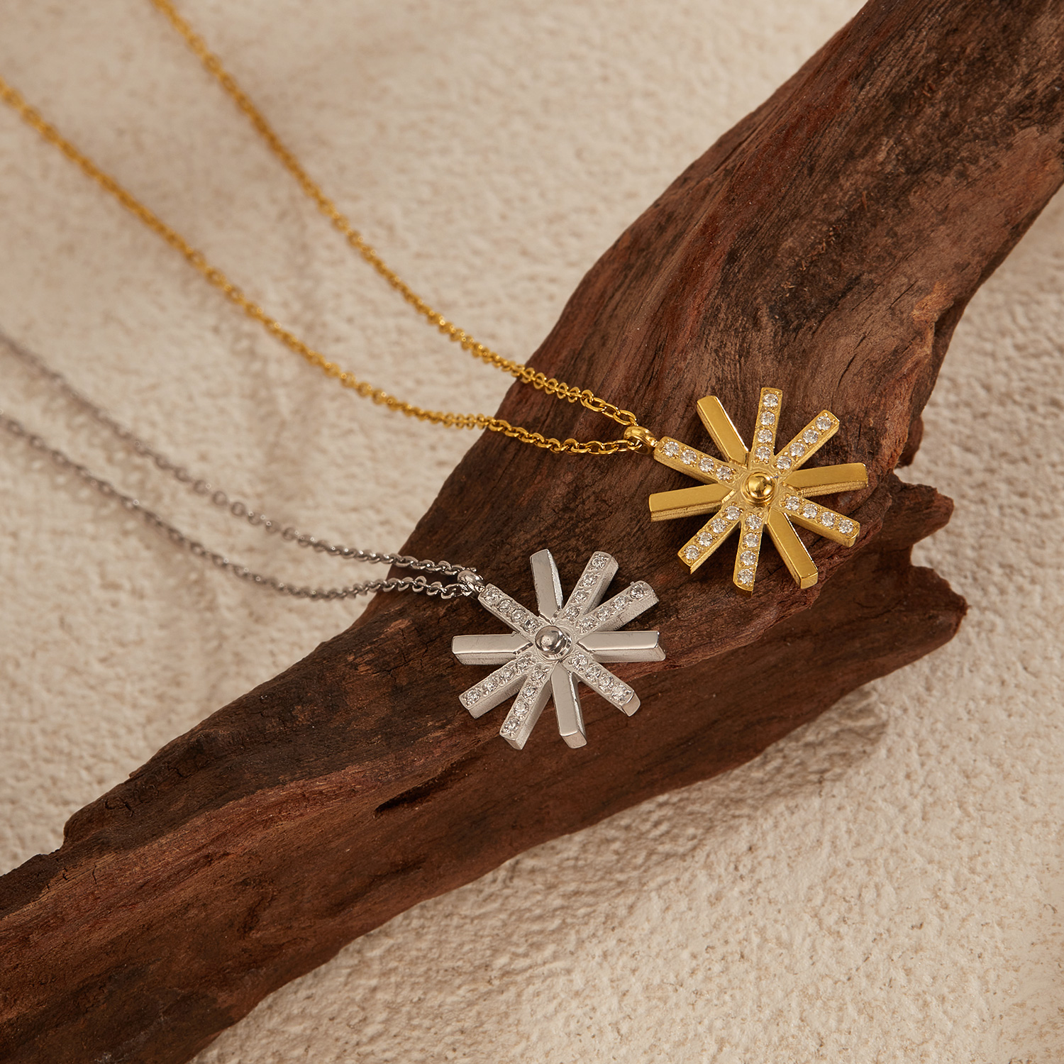 For cosmic navigators charting destiny vectors, NOURA forges this astral necklace with solar plasma links interlaced with electrodeposited lunar titanium threads. The 17mm geocentric pendant – engineered with 32 facet-holographic cubic zirconia – becomes a micro observatory: gold prisms refract manifestation gamma rays while silver cavities absorb intuition neutrinos at 9g (mass of exoplanet core sample!), creating gravitational lensing at your thymus gateway.