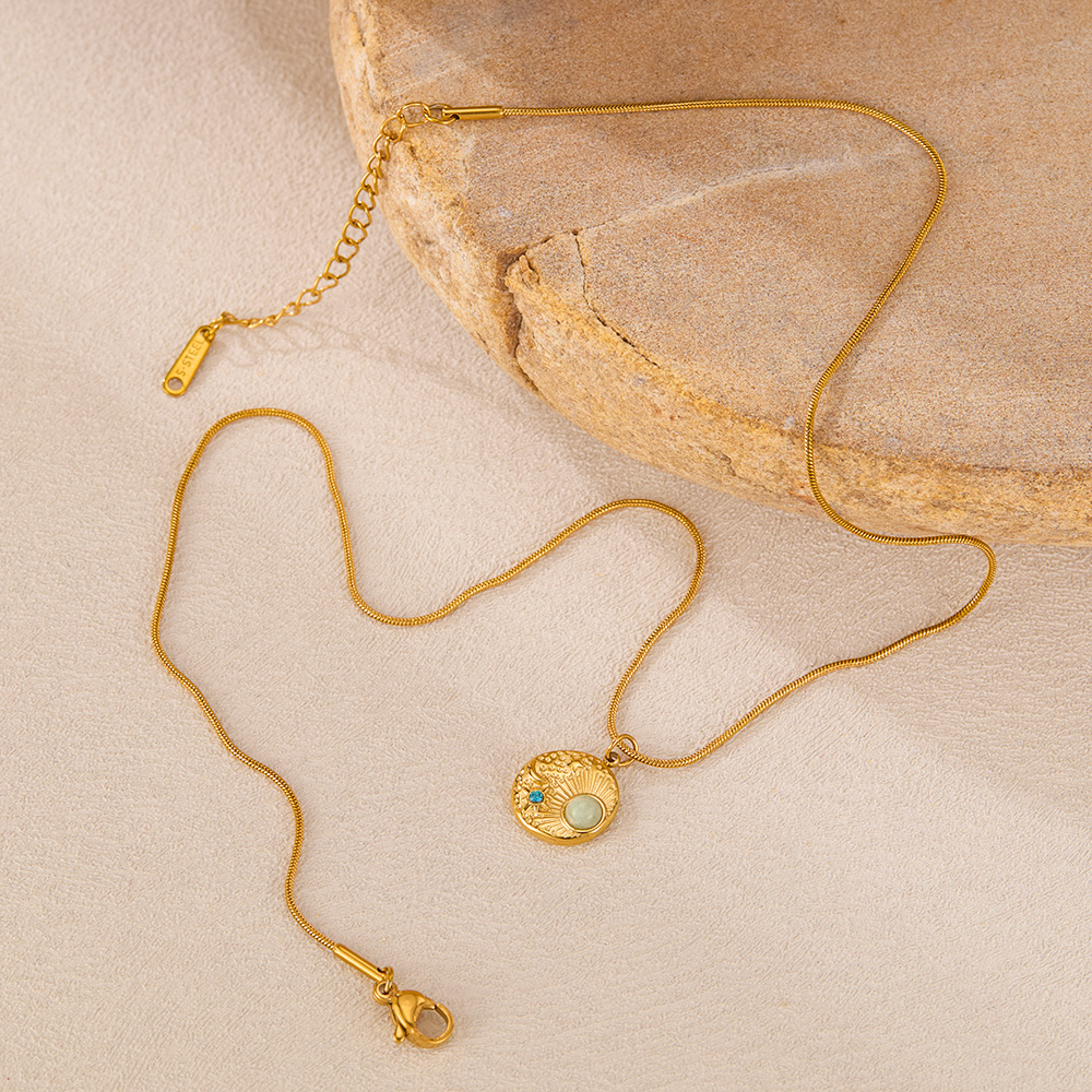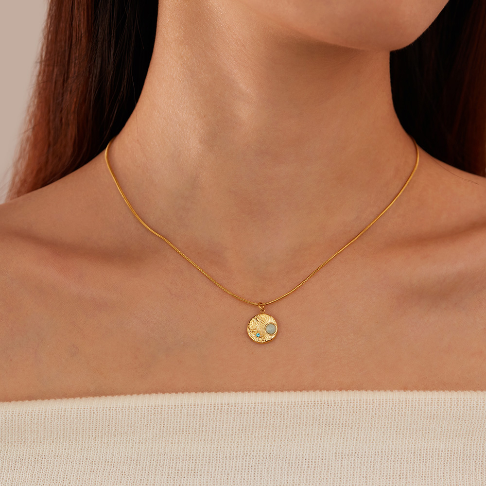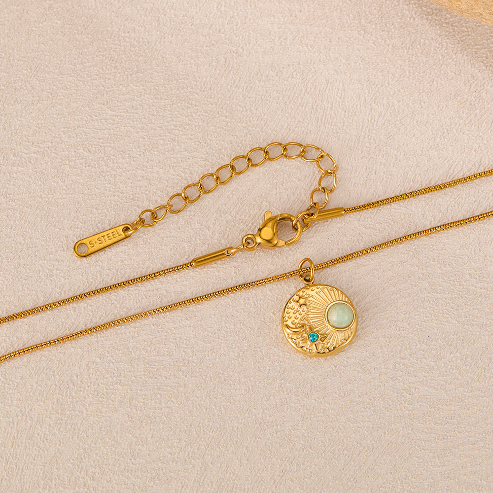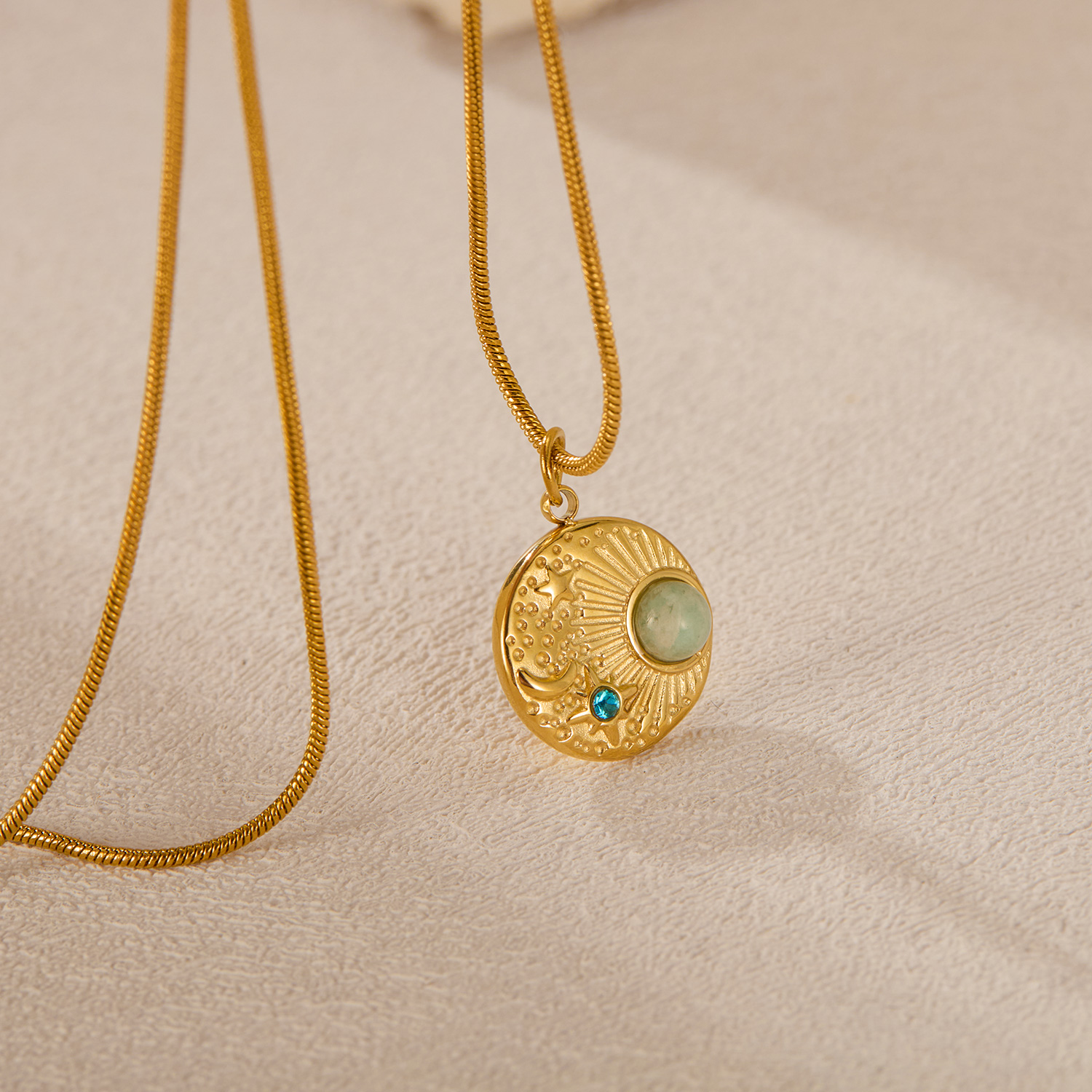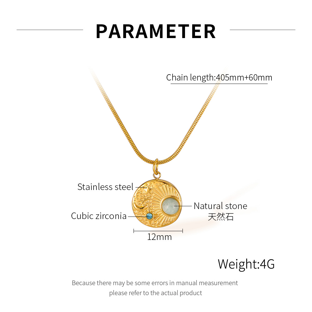 For celestial navigators, NOURA engineers this galactic artifact with meteorite-etched steel embracing a 12mm cosmic core: natural moonstone crater encircled by 7 zirconia stars. The astral geometry – precisely weighted at 4g (mass of stardust!) – channels celestial energy: moonstone absorbs lunar intuition while zirconia constellations project cosmic confidence at your collarbone gateway.
