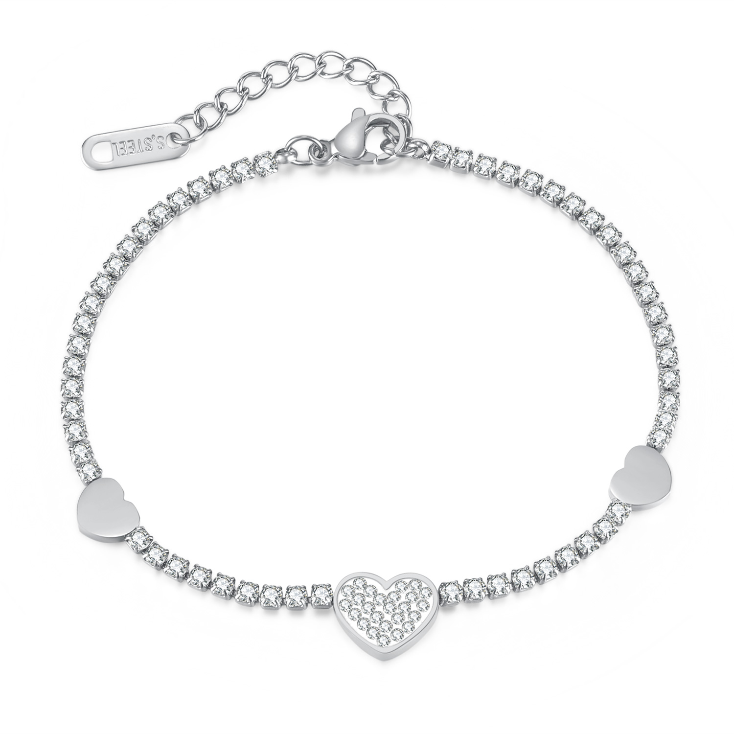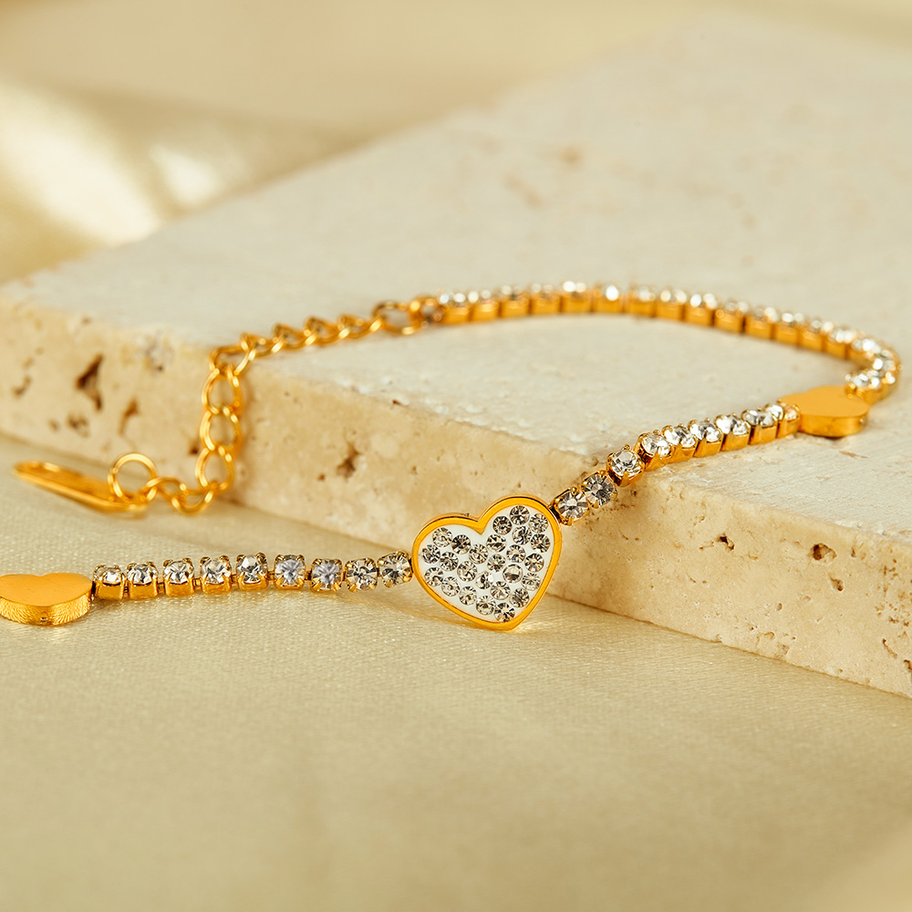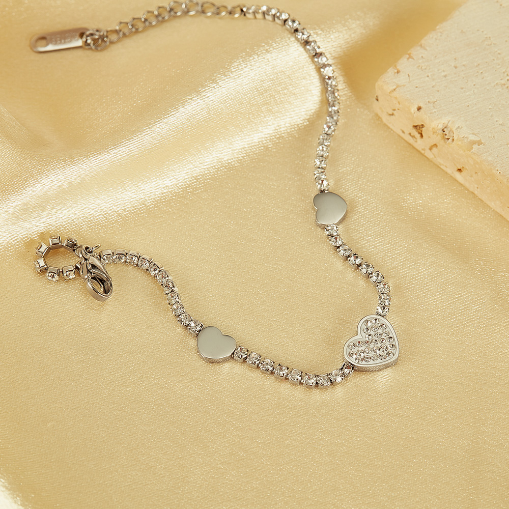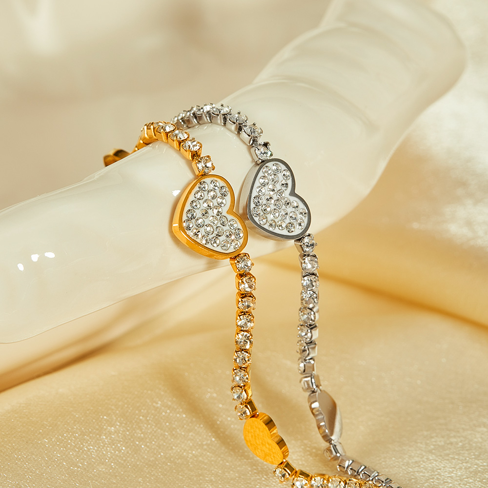 For those who speak love in light and metal, NOURA suspends a 10mm heart blazing with 89 diamond-cut zirconia – cradled between gold solar chains and silver lunar strands. At 3.5g (lighter than a peppermint!), this 175-220mm bracelet transforms physics into poetry: the faceted heart throws prismatic kisses while dual-tone chains symbolize love's duality.