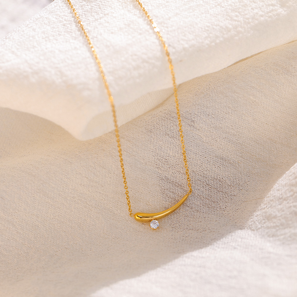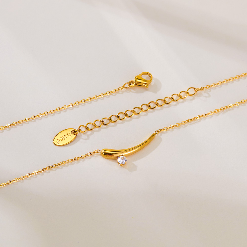 For modern minimalists, NOURA crafts this meditative vessel with micro-brushed steel streams carrying a 20mm zirconia canoe. The floating geometry – weightless at 2g (mass of a haiku!) – captures tranquility: 4.3mm zirconia facets refract city glare into liquid moonlight while 3.2mm chains trace invisible currents at your collarbone harbor.